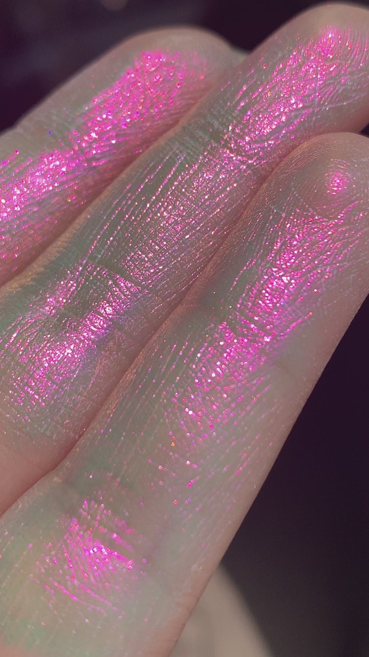 This is WATERMELON SUGAR! Our hot new Liquid Eyeshadow! It's a disappearing colorful wonder that changes shades when looked at from different perspectives!